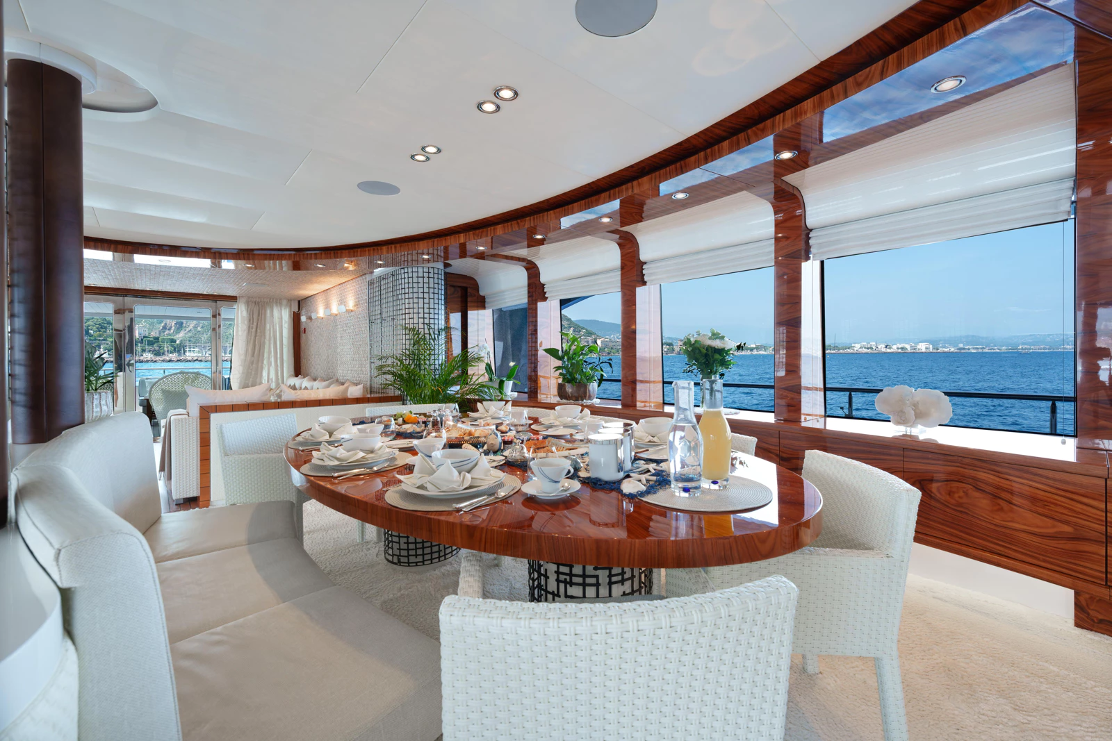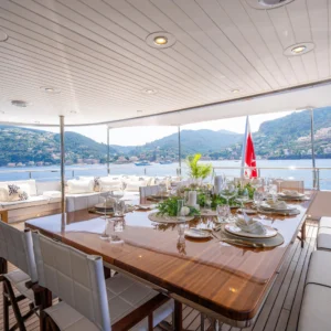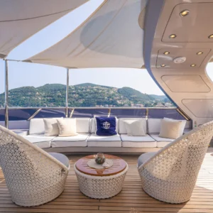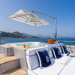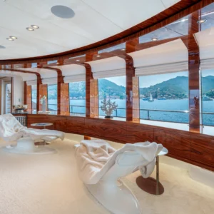 A dedicated crew of ten ensures impeccable service, while amenities such as a gym, Wi-Fi, and air conditioning cater to every modern need. With a cruising speed of 12 knots and a maximum speed of 23 knots powered by dual MTU engines, HATT MILL is as powerful as she is beautiful. Her onboard inventory includes state-of-the-art water toys and tenders, providing endless entertainment for those fortunate enough to step aboard this floating palace.